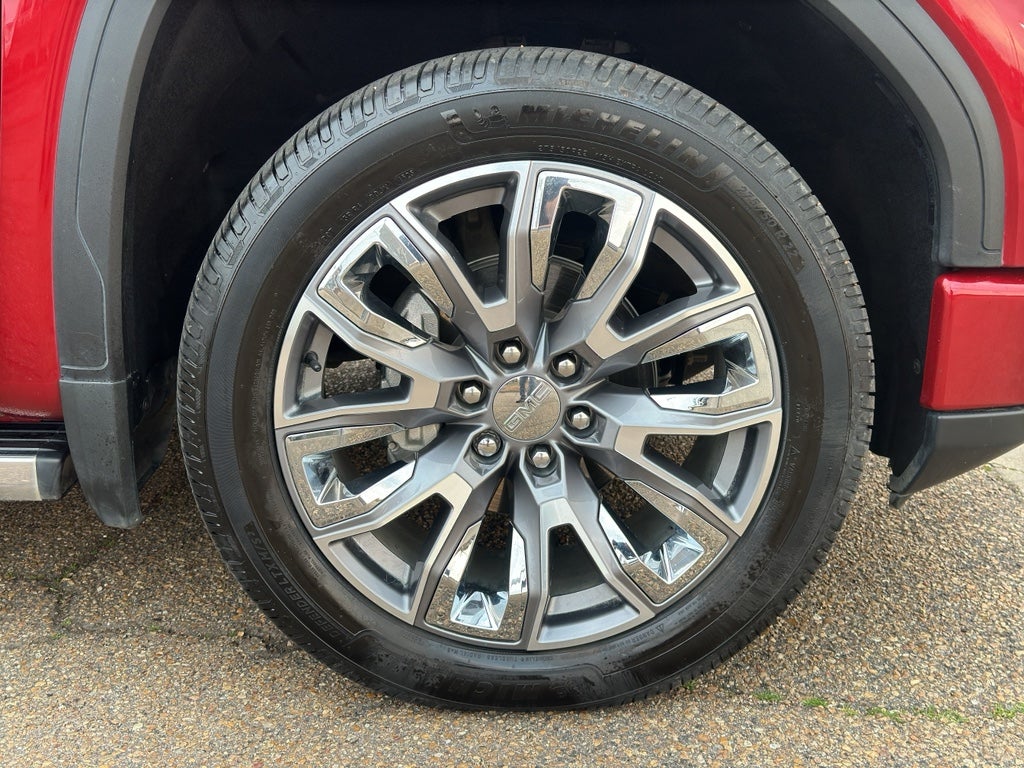 Denali Reserve Package: GMC MultiPro Power Steps; Power Sunroof; 22" X 9" Painted Aluminum Wheels. Technology Package: Multicolor 15" Diagonal Head-Up Display; Rear Camera Mirror; Adaptive Cruise Control. Preferred Equipment Group 5SA: Trailer Side Blind Zone Alert; Chrome Wheel to Wheel Assist Steps; Power Sliding Rear Window with Rear Defogger; Ultrasonic Front and Rear Park Assist; Trailer Camera Provisions; Electric Rear-Window Defogger; Theft Deterrent System (unauthorized Entry); Chrome Header with Signature Denali Chrome Grille; Front Rainsensing Wipers; Heavy-Duty Air Filter; Compass; 120-Volt Instrument Panel Power Outlet; Heated Driver and Front Outboard Passenger Seating; Wireless Charging; Color-Keyed Carpeting Floor Covering; OnStar and GMC Connected Services Capable; Heated 2nd Row Outboard Seats; Power Front Passenger Windows with Express Up/down; Premium Bose 7-Speaker Sound System; Power Rear Windows with Express Down; Integrated Trailer Brake Controller; HD Surround Vision; Ventilated Driver and Front Passenger Seats; Power Rake and Telescoping Steering Column; Keyless Open and Start; Perimeter Lighting; Push Button Start; LED Cargo Area Lighting; Remote Vehicle Starter System; In-Vehicle Trailering App; Hill Descent Control; 5.3L EcoTec3 V8 Engine; Floor-Mounted Center Console; 170 Amp Alternator; Bed View Camera; Auxiliary External Transmission Oil Cooler; Rear Cross Traffic Braking; GMC Pro Safety; Electrical Steering Column Lock; Trailering Package; Wireless Phone Projection; 2 USB Ports; 2 Charge/data USB Ports Inside Center Console; Chrome Recovery Hooks; Denali Premium Suspension with Adaptive Ride Control; Steering Wheel Audio Controls; 2 type-C Charge-Only Rear USB Ports; GMC Connected Access Capable; Universal Home Remote; 2-Speed Transfer Case; Deep-Tinted Glass; Spray-On Pickup Bed Liner with Denali Logo; SiriusXM with 360L; Hitch Guidance with Hitch View; Power Front Windows with Driver Express Up/down; Rear Pedestrian Detection; Wi-Fi Hotspot Capable; Rear Wheelhouse Liners; Auto-Locking Rear Differential; Power Door Locks. GMC MultiPro Power Steps. Power Sunroof. 3 Years of OnStar Safety and Security. MulitPro Audio System by Kicker. Volcanic Red Tintcoat. Rear Underseat Storage. GMC MultiPro Tailgate Step Lights. Front Premium Floor Liners with Removable Carpet Insert. Wheel Locks (set of 4). **Equipment listed is based on original vehicle build and subject to change. Please confirm the accurac