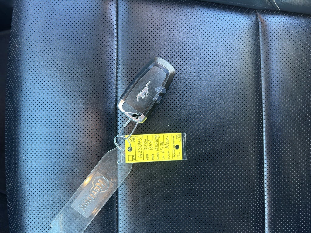 It warns of approaching vehicles with Cross-Traffic Alert. Protect this vehicle from unwanted accidents with a cutting edge backup camera system. This vehicle has a clean AutoCheck report. Never get into a cold vehicle again with the remote start feature on it. This Ford Mustang is pure luxury with a heated steering wheel. The vehicle's AutoCheck: 1 owner, assurance of single-owner history for peace of mind. The leather seats in this Ford Mustang are a must for buyers looking for comfort, durability, and style. This model offers Android Auto for seamless smartphone integration. The vehicle offers Apple CarPlay for seamless connectivity. The Ford Mustang keeps you comfortable with Auto Climate. The Ford Mustang features a hands-free Bluetooth® phone system. The rear parking assist technology on this 2024 Ford Mustang will put you at ease when reversing. The system alerts you as you get closer to an obstruction. Maintaining a stable interior temperature in this small car is easy with the climate control system.