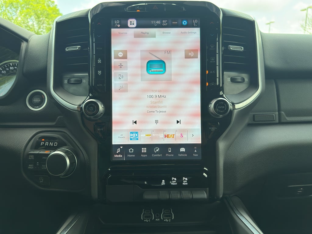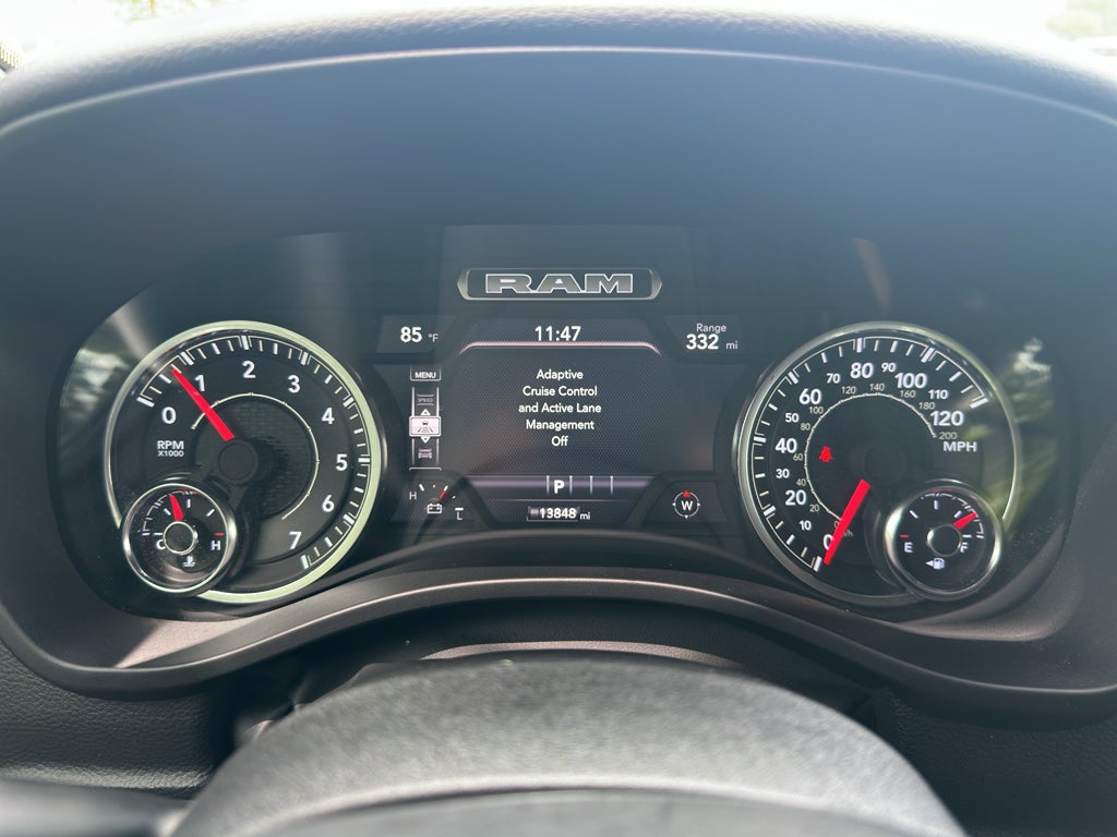 Big Horn Level 2 Equipment Group: Google Android Auto; USB Host Flip; Power Adjustable Pedals; Leather Wrapped Steering Wheel; Integrated Voice Command with Bluetooth®; 12" Touchscreen Display; Glove Box Lamp; Auto Power-Folding Mirrors; 115V Auxiliary Rear Power Outlet; Media Hub with 2 Charge Only USBs; Heated Front Seats; Security Alarm; Black Premium Power Mirrors; Apple CarPlay; Premium Overhead Console; 9 Amplified Speakers with Subwoofer; Wireless Charging Pad; Remote Tailgate Release; 115V Auxiliary Power Outlet; LED Dome Lamp with On/off Switch; Universal Garage Door Opener; 2nd Row in Floor Storage Bins; Sun Visors with Illuminated Vanity Mirrors; LED Footwell Lighting; Power 2-Way Driver Lumbar Adjust; Rear Window Defroster; Rear View Auto Dim Mirror; Rear Power Sliding Window; Connectivity - US/Canada; GPS Navigation; 4G LTE Wi-Fi Hot Spot; GPS Antenna Input; Overhead LED Lamps; Exterior Mirrors with Heating Element; Auto Dim Exterior Driver Mirror; SiriusXM with 360L; Connected Travel and Traffic Services; Heated Steering Wheel; Black Exterior Mirrors; Configurable Drive Mode; 400W Inverter; HD Radio; Uconnect 5 Navigation with 12.0" Display Radio; Exterior Mirrors with Supplemental Signals; Steering Wheel Mounted Audio Controls; Exterior Mirrors Courtesy Lamps; Air Conditioning ATC with Dual Zone Control; Cluster 7.0" TFT Color Display; Power Adjust 8-Way Driver Seat; Convex Wide-Angle Exterior Mirror Insert. Quick Order Package 21Z Big Horn. 20" X 9" Aluminum Chrome Clad Wheels. RamBox Cargo Management System. 9 Amplified Speakers with Subwoofer. Deluxe Cloth Bucket Seats. 3.55 Rear Axle Ratio. **Equipment listed is based on original vehicle build and subject to change. Please confirm the accuracy of the included equipment by calling the dealer prior to purchase.**